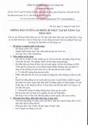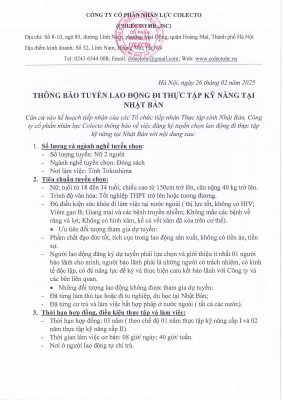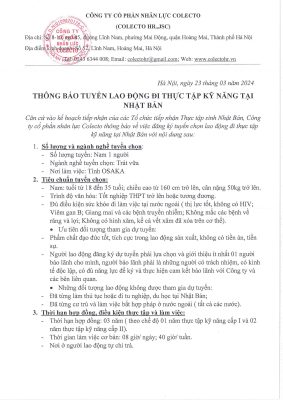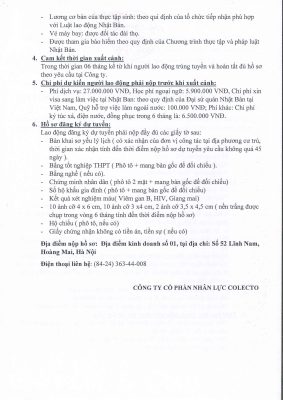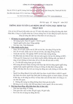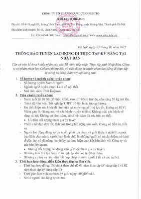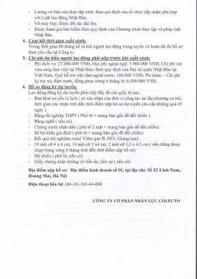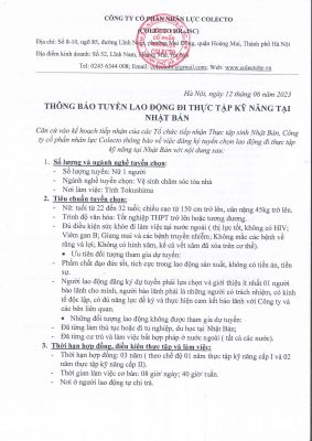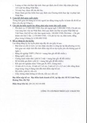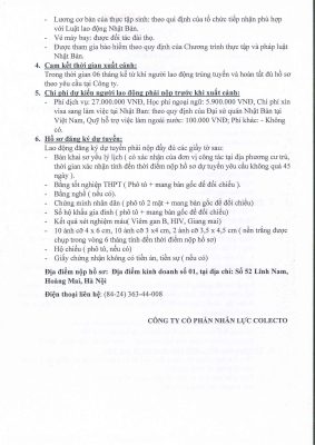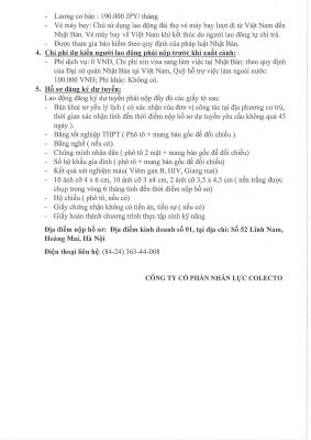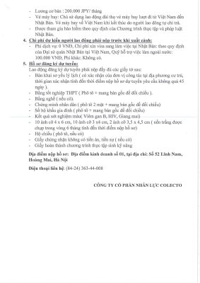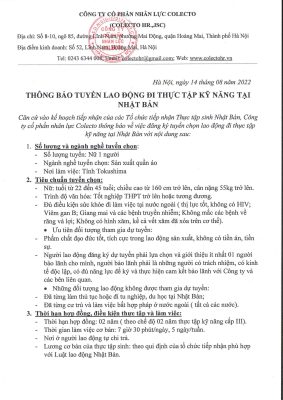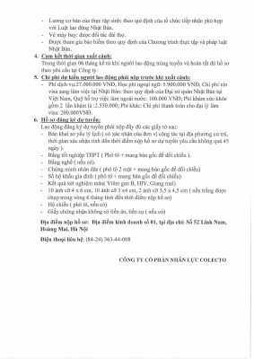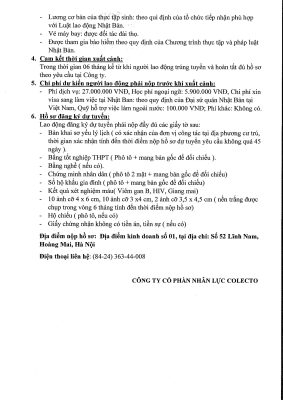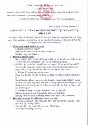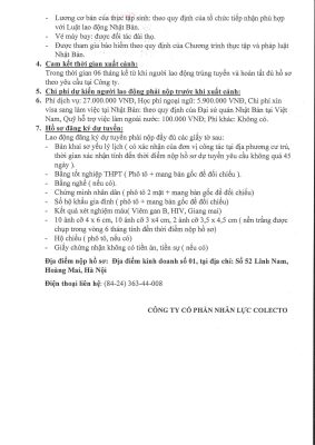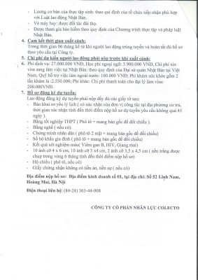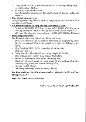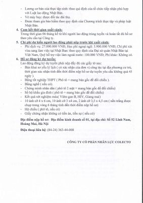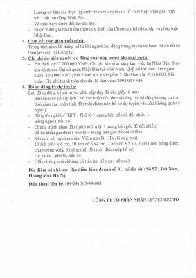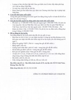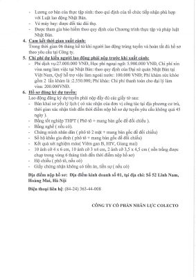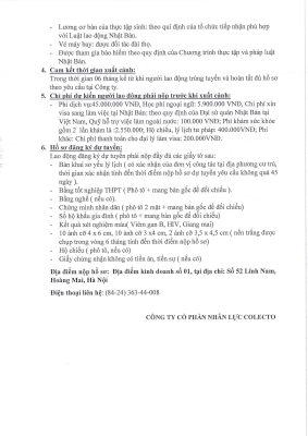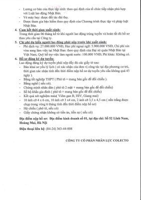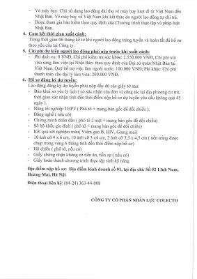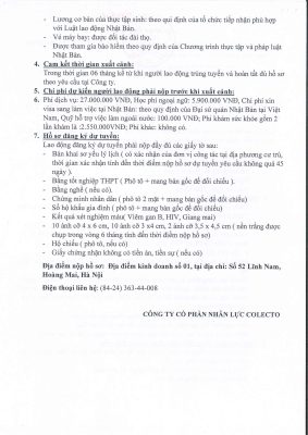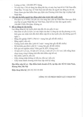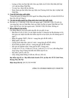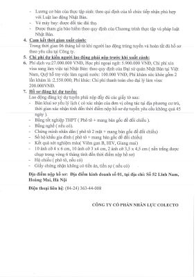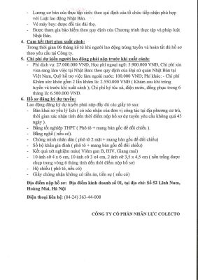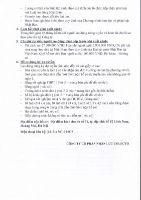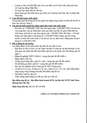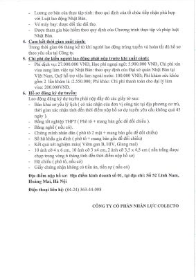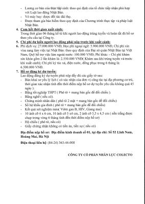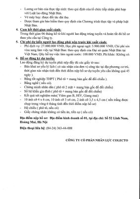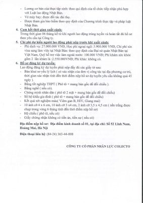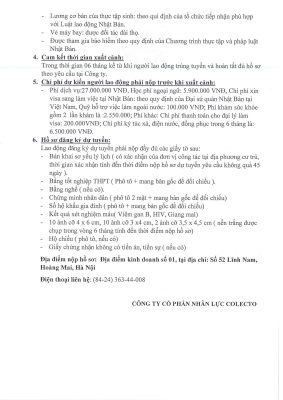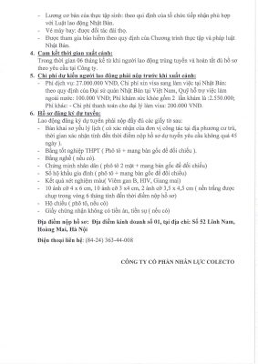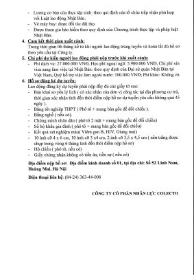 THÔNG TIN XUẤT KHẨU LAO ĐỘNG NHẬT BẢN CÔNG TY CỔ PHẦN NHÂN LỰC COLECTO