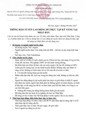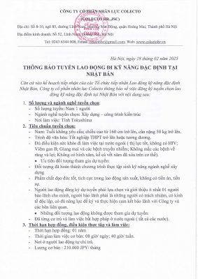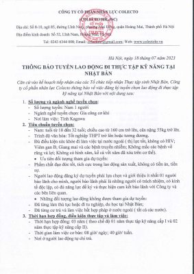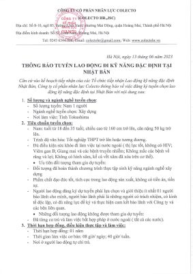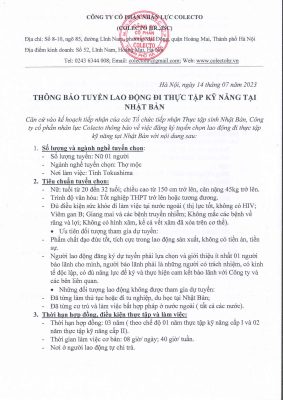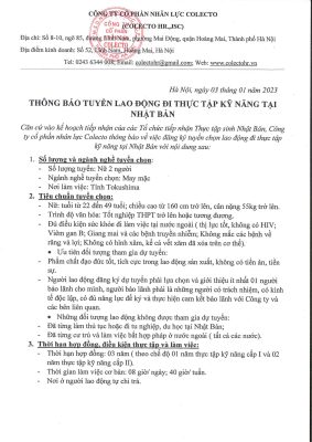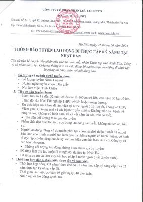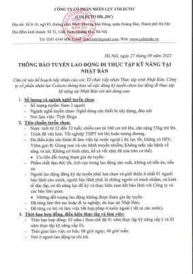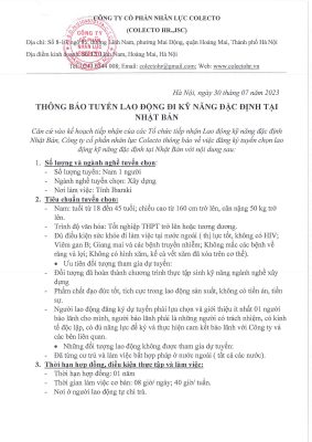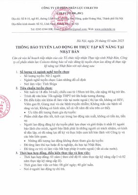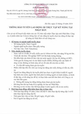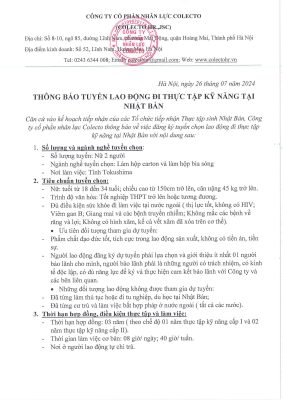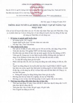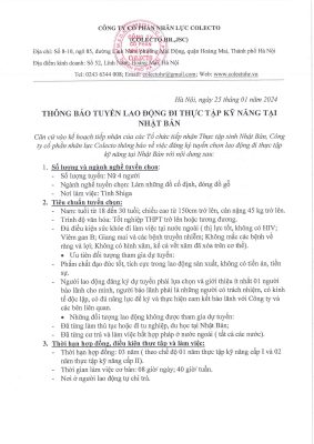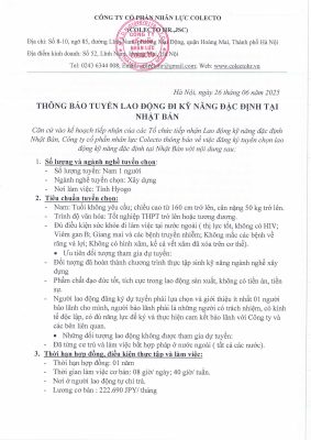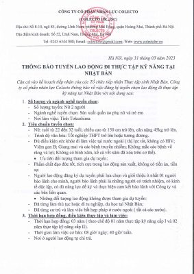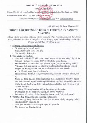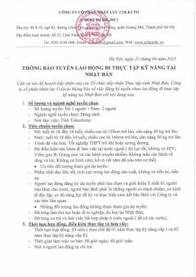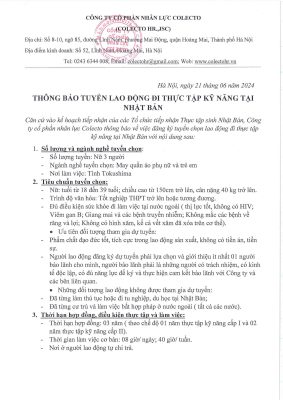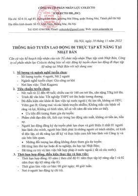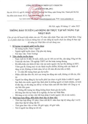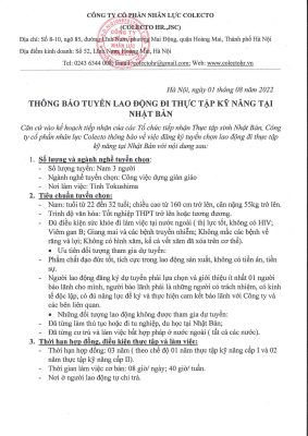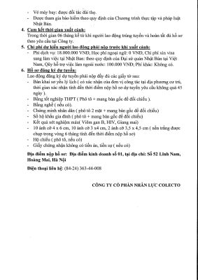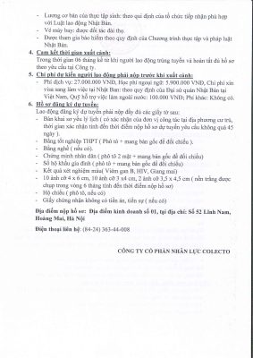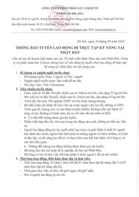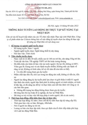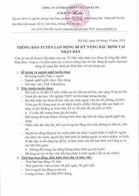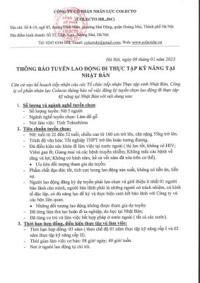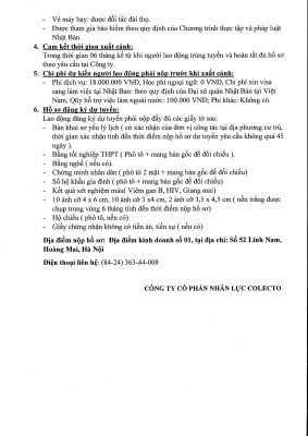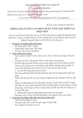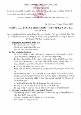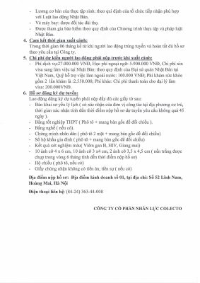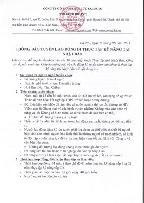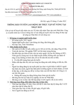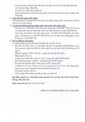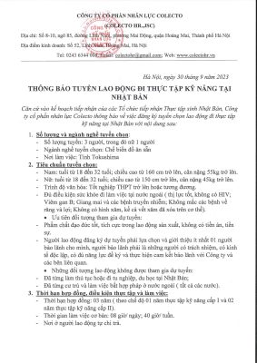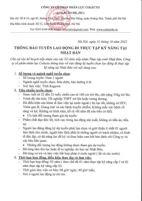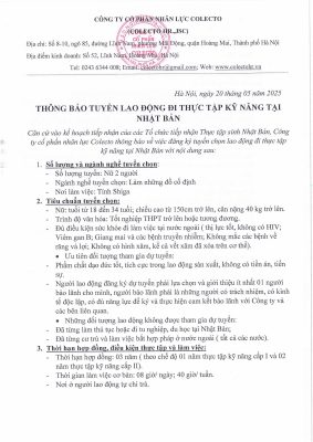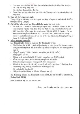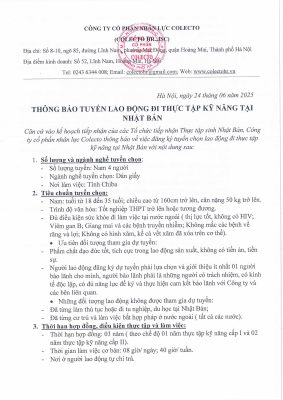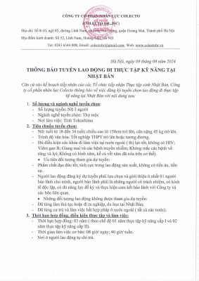 THÔNG TIN XUẤT KHẨU LAO ĐỘNG NHẬT BẢN CÔNG TY CỔ PHẦN NHÂN LỰC COLECTO